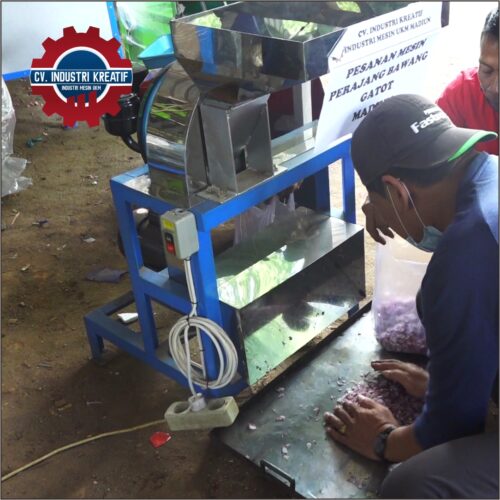 Mesin Perajang bawang otomatis digunakan untuk mengiris atau merajang aneka macam bawang seperti bawang merah dan bawang putih, dengan cepat dan mudah